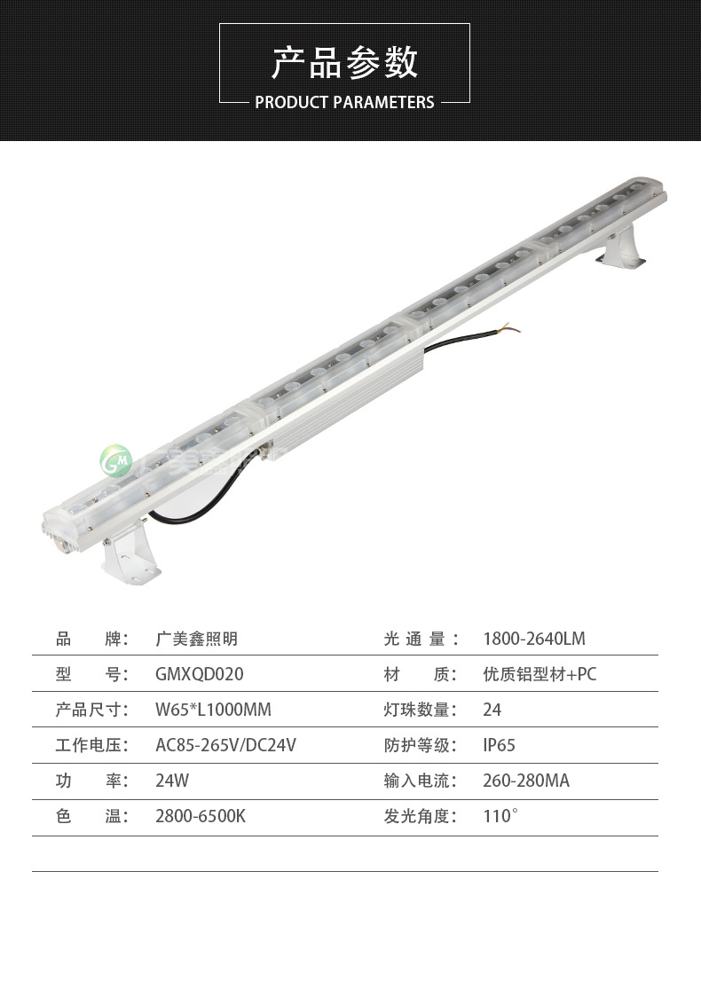 | Power | 24(W) | Light color | RGB colorful internal control, DMX512 external control, monochrome, custom can contact customer service
