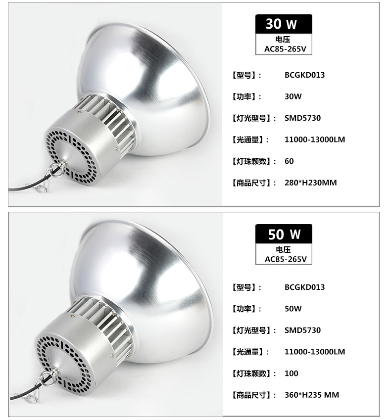 Type of light source | SMD5730 | Power source | 30/50/80/100(W) | Shade type | UFO lamp