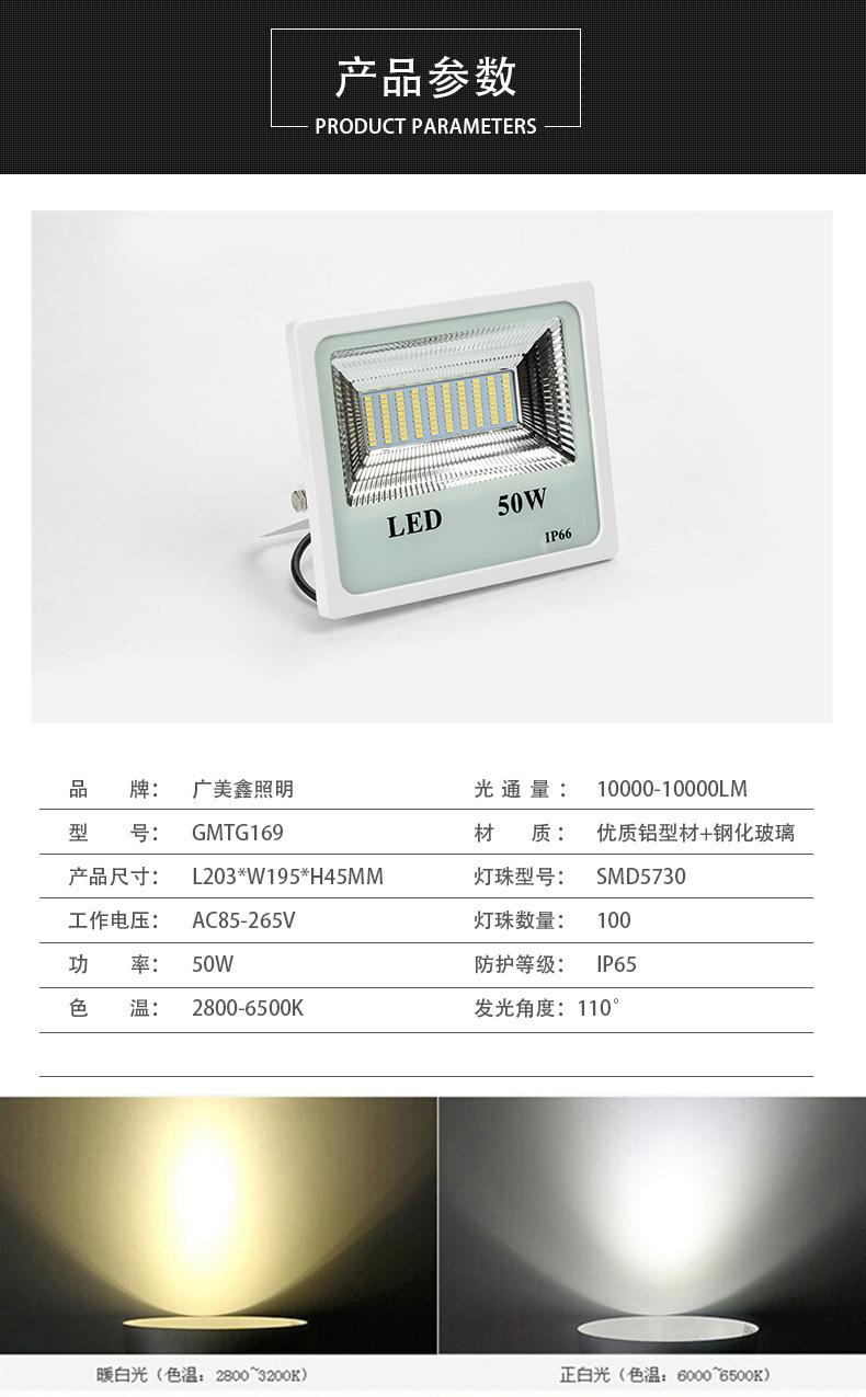 Whether cross-border supply | no | Color temperature | 3000K (warm white), 4000K (white), 6500K (cold white) | Series | LED flood light |
