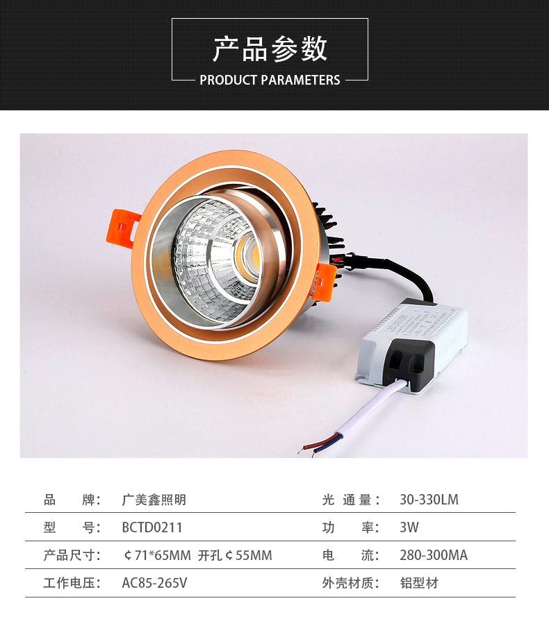 Whether cross-border supply | No | series | LED downlight | colour | Gold |