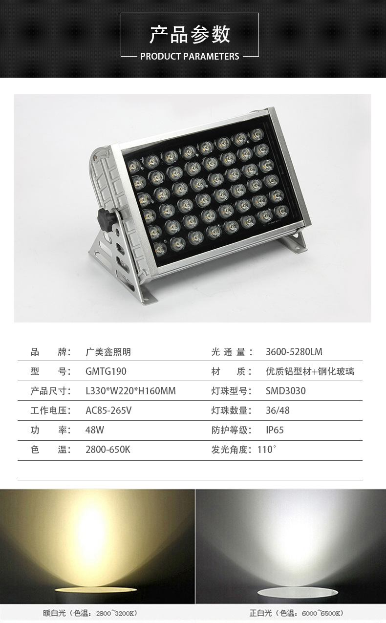 | 輸入電壓 | 220(V) | LED燈珠顆數(shù) | 36 / 48 | 光通量 | 3600-5280(LM) |