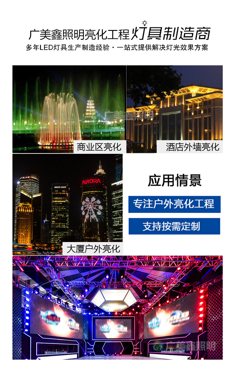 隨著亮化技能的開展,傳統(tǒng)的光源已經(jīng)不能完全滿足人們對照明的要求,現(xiàn)在洗墻燈led光源越來越受亮化工程的喜歡,目前市場上出售的主要有兩種洗墻燈led光源。一種是COB集成點光源,其多個芯片直接結(jié)合,另一種是單個洗墻燈led光源與PCB板拼接,貼片面光源。1、更亮更好的光線景象照明的主要功能是安全和裝修。 LED投光燈和LED洗墻燈被認為是最亮堂的光線方式。它可以達到每瓦110至120流明,并